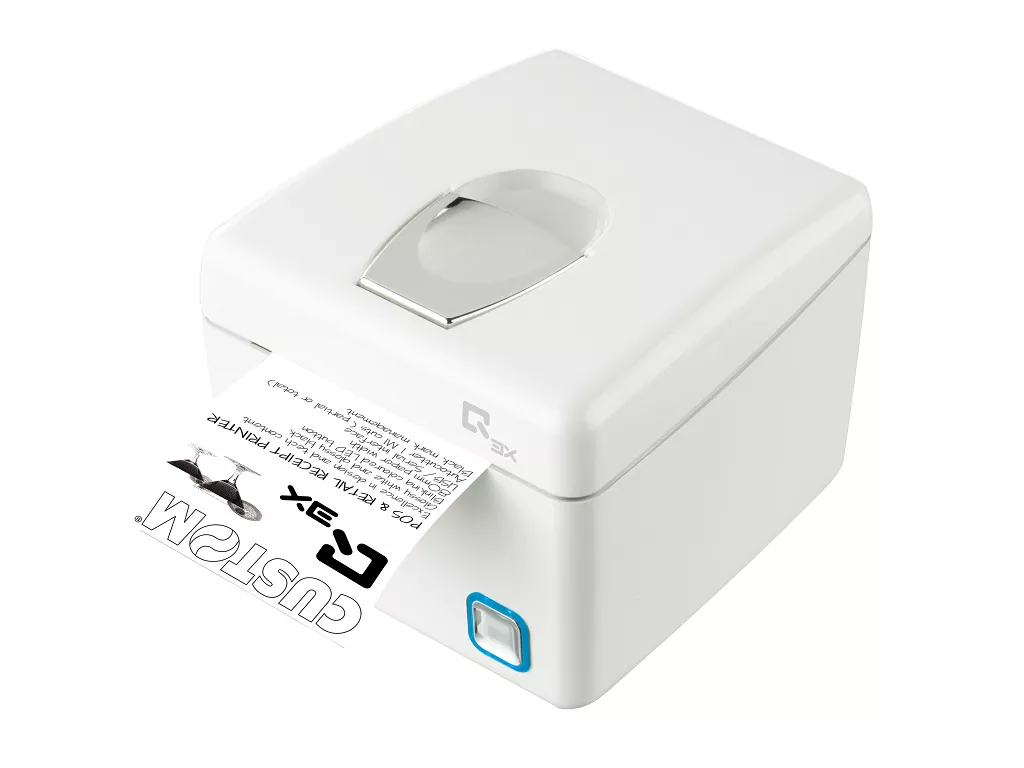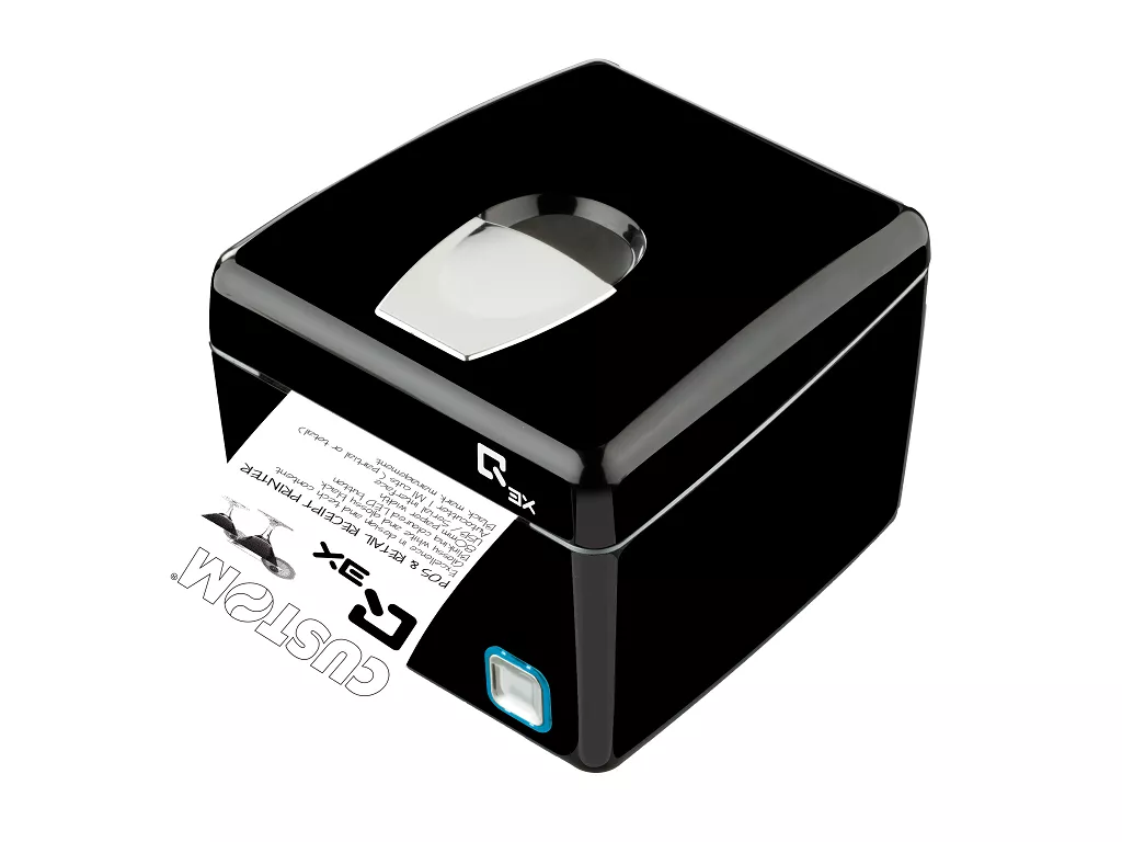 Custom Q3X POS receipt printer is the ideal solution for those customers searching for the latest and highest performance levels in a modern product design. The thermal head provides excellent graphic printing quality and lower power consumption. The cutter has been designed to optimise the product performance, both in terms of efficiency and reliability. It meets the most demanding operating requirements. Its elegant design, developed to perfectly match any environment, is combined with reach technical features. It prints on 80 mm wide thermal paper, with front ticket outlet. Serial / USB or Ethernet interface. Optional Bluetooth and Wi-Fi interfaces.